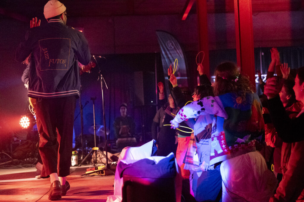 C’est d’abord sur le site extérieur que les participants sont conviés pour profiter d’une expérience audiovisuelle immersive signée par le duo rouynorandien passion_partage, formé des VJ et DJ Zazouu et Mamiilou. Leurs arrangements rythmeront les déplacements et les rencontres tout au long des deux soirées. Inspirée par l’esthétique rétro des années 1990, cette édition, dans le décor de laquelle assettes et téléviseurs cathodiques sont rois, invite également les participants à revisiter leur garde-robe hivernale pour y trouver les pièces les plus vintages